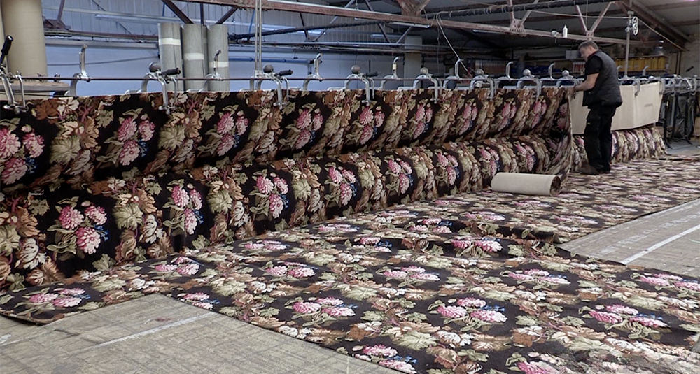In 2007 when the last Sultana 100% worsted wool, 27” wide Axminster looms were destined for scrap, David Luckham and Mo Mant saved them, preserving the only machines capable of producing authentic historic carpets with the fineness and colour of traditional tapestry work. Over decades, David has supplied carpets to major heritage sites including Mansion House, Windsor Castle “after the fire” and the Royal Albert Hall. The rescue enabled the production of a replica of Printed Tapestry Velvet Carpet to be woven for Hampton Historic Site, Towson, MD National Park Service, USA. Designed and manufactured by John Crossley & Sons of Halifax in the 1840’s followed by the Library carpet at Felbrigg Hall for the National Trust, a rare surviving example of the genre still in situ 170 years on (illustrated). Both carpets using more than 30 different colours. Now the Looms are being repatriated to their original home at Dean Clough Mills to be rebuilt and ready to weave the Axminster Carpet recognised as the ‘finest ever woven on a machine by man’.